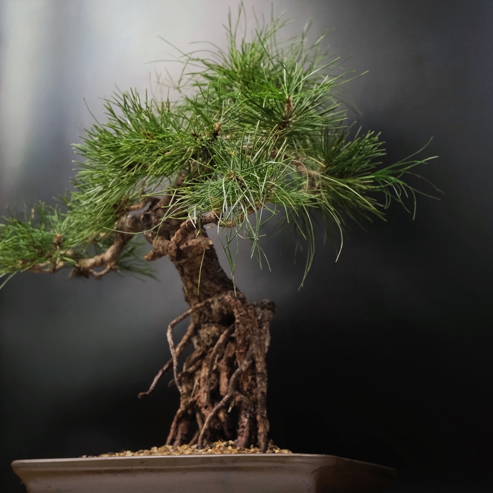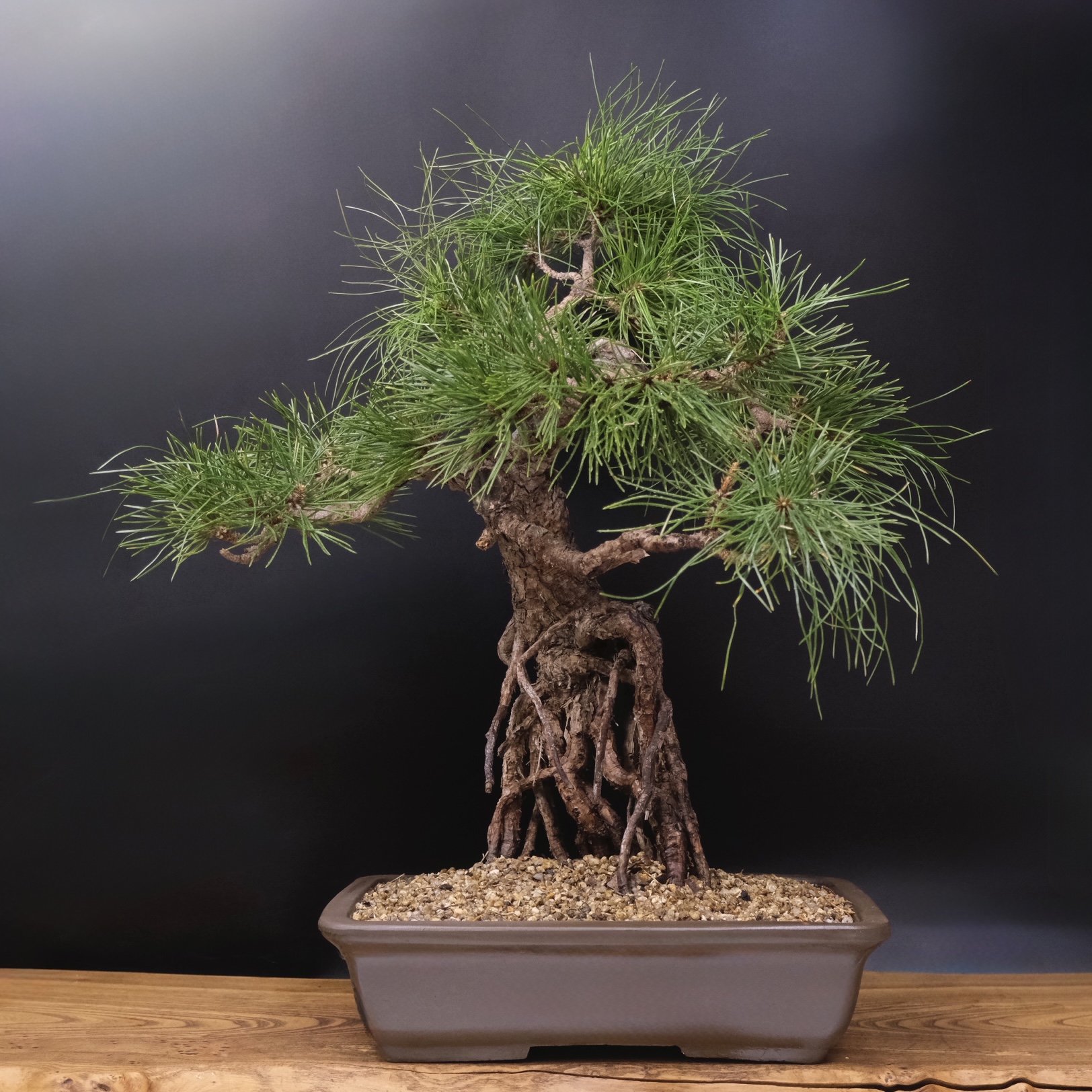 Бонсай сформирован в виде дерева с небольшим изгибом у основания ствола, крона имеет каноническую для хвойных бонсай пирамидальную форму. Изгиб ствола и количество ветвей могут отличаться в связи с индивидуальным формированием каждого растения.