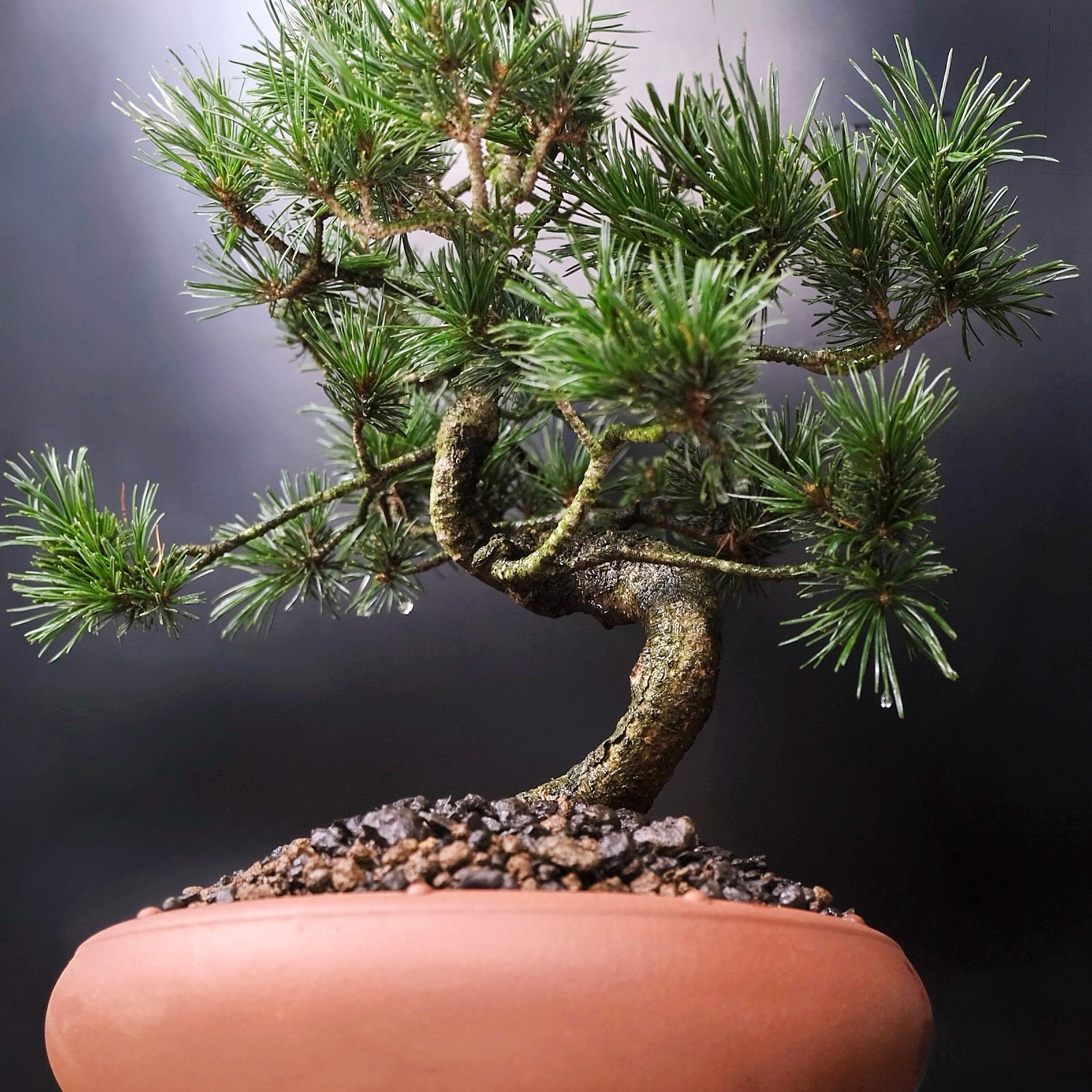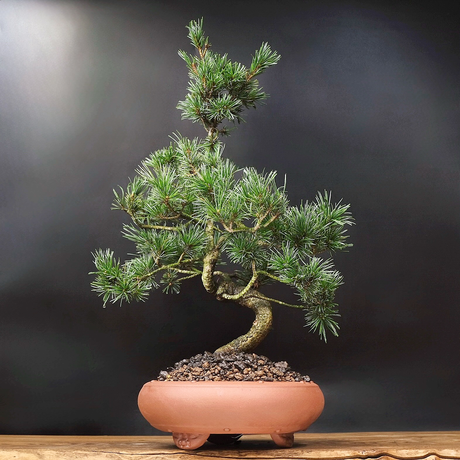 Бонсай сформирован в виде дерева с небольшим изгибом у основания ствола, крона имеет каноническую для хвойных бонсай пирамидальную форму. Изгиб ствола и количество ветвей могут отличаться в связи с индивидуальным формированием каждого растения.