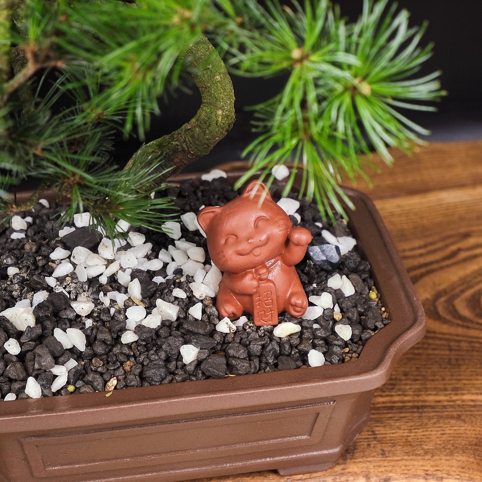 Многолетнее хвойное дерево сосна (лат. Pinus), семейства Сосновые. Широко распространенное растение на всем Северном полушарии. Название произошло от латинского слова pix, picis, означающее «смола», «смолистое дерево». Является традиционным растением для выращивания в культуре бонсай. В Японии считается, что мастер не сможет достигнуть высшего уровня искусства, не вырастив бонсай из сосны.
